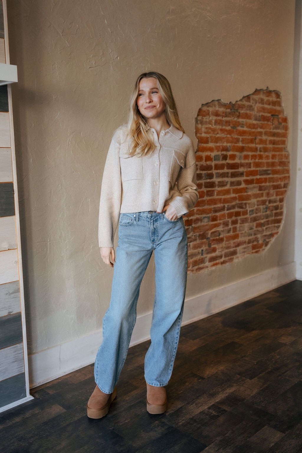 This top runs true to size with a cropped fit. Model wearing size XS.