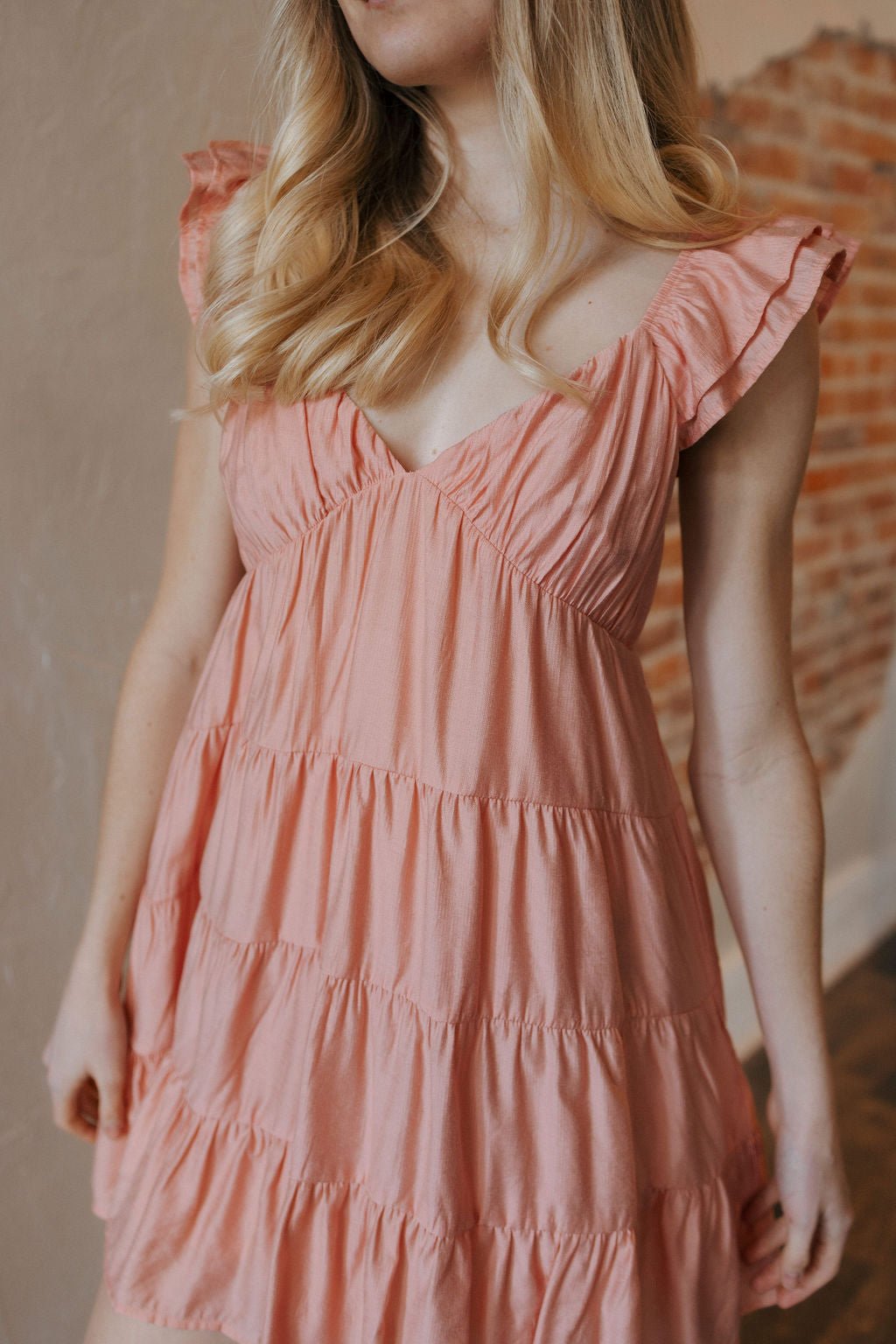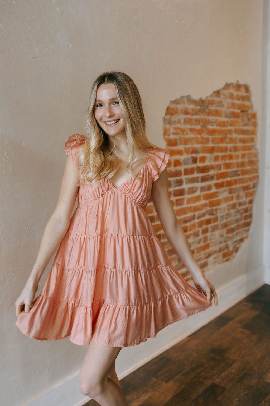 This coral V neck babydoll dress is perfect for summer and spring! Stay trendy and stylish with its playful design. It's the perfect addition to your wardrobe for any occasion.